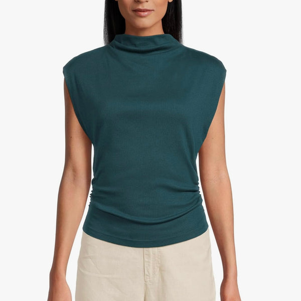 Amara Mock Neck Power Shoulder Top in Rainforest