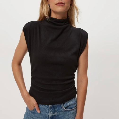 Amara Power Shoulder Top in Black