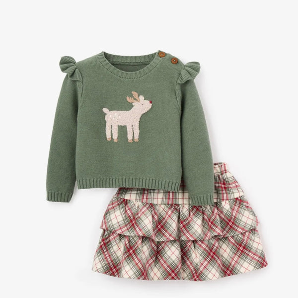 Ruffle Collar Pointelle Baby Sweater Dress (Organic Cotton)