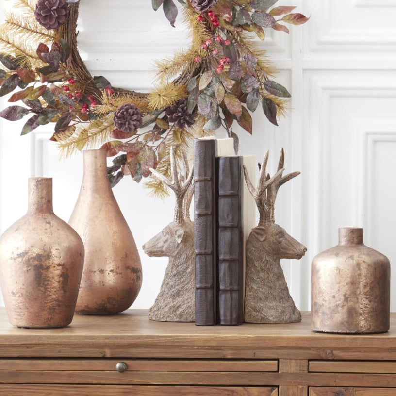 SET OF 2 11.75 INCH TAN RESIN DEER BUST BOOKENDS