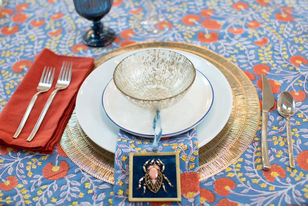 Add some flair to your festive entertaining with this eye-catching Round Textured Placemat. This placemat in gold is sure to brighten any table while protecting its surface throughout the holidays, for any get-together or entertaining occasion. Also available in silver.