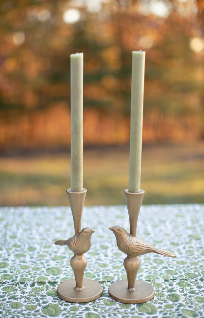 Beautiful cast iron bird taper holders will make any table fun and unique. A great piece for year round entertaining.