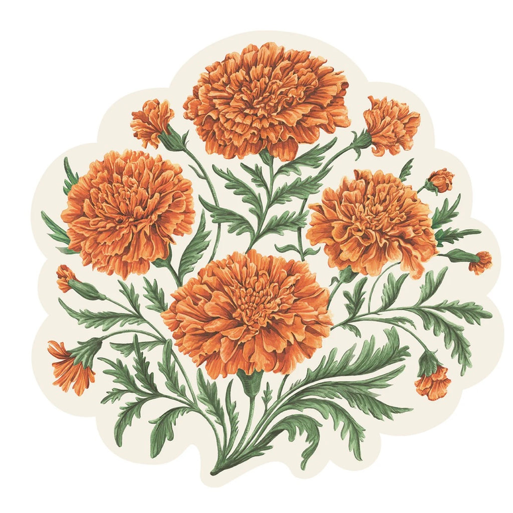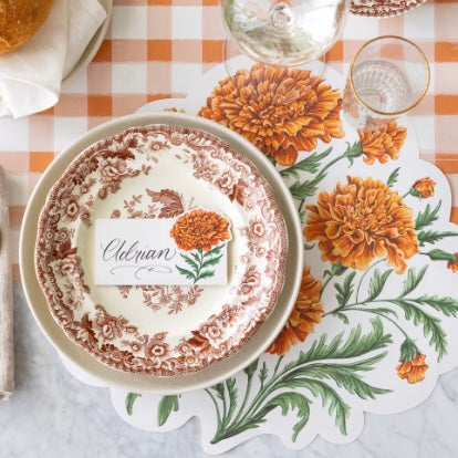 The Die-cut Marigold Bouquet Placemat frames your plate in autumn colors, from rich oranges to stunning sage. Inspired by textile printing, the bold florals and swirling leaves are a gorgeous foundation for fall and Thanksgiving tables.