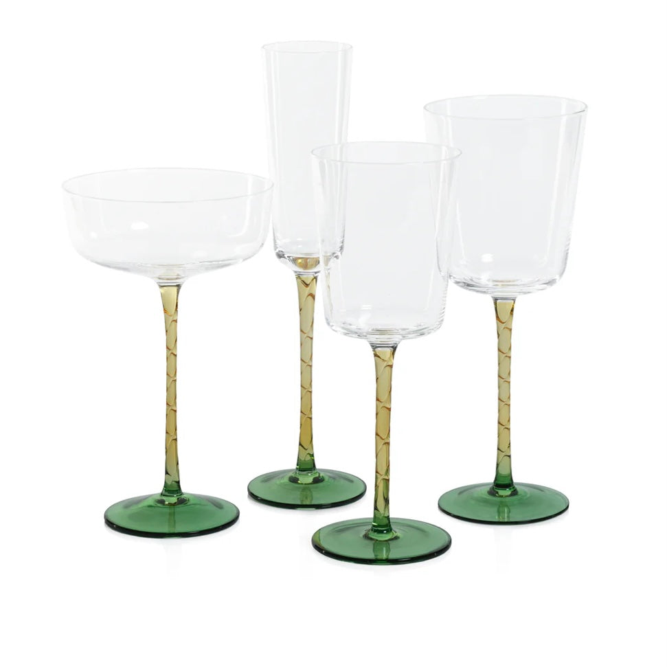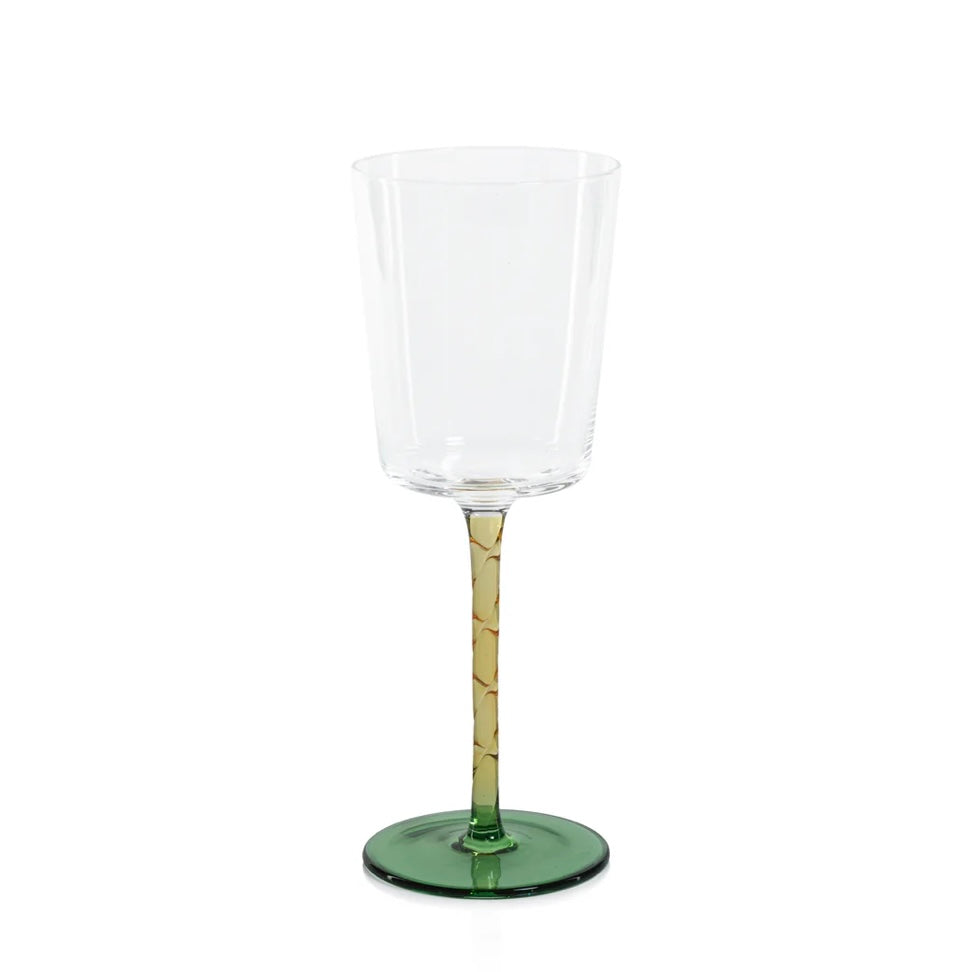 Wine Glass with Amber Stem & Green Base, priced individually