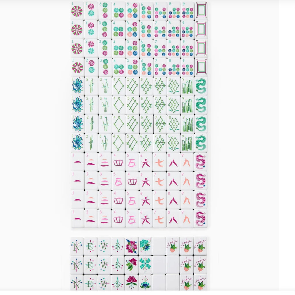 Set includes Tiles, Dice/Coin Bag and 4 Instructional Cards (If playing American Mahjong, will need to purchase NMJL Playing Card separately).