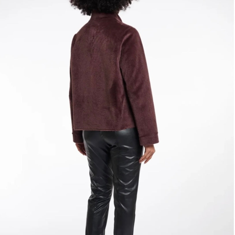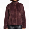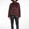 Short faux-fur jacket with a soft faux suede lining. This jacket features a high collar, cut seams on the chest, a hidden push button closure and invisible side slit pockets. The material of the jacket is so soft you cannot resist to wear it!