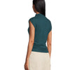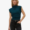 Amara Mock Neck Power Shoulder Top in Rainforest