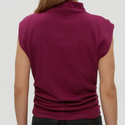 Amara Mock Neck Power Shoulder Top in Ruby