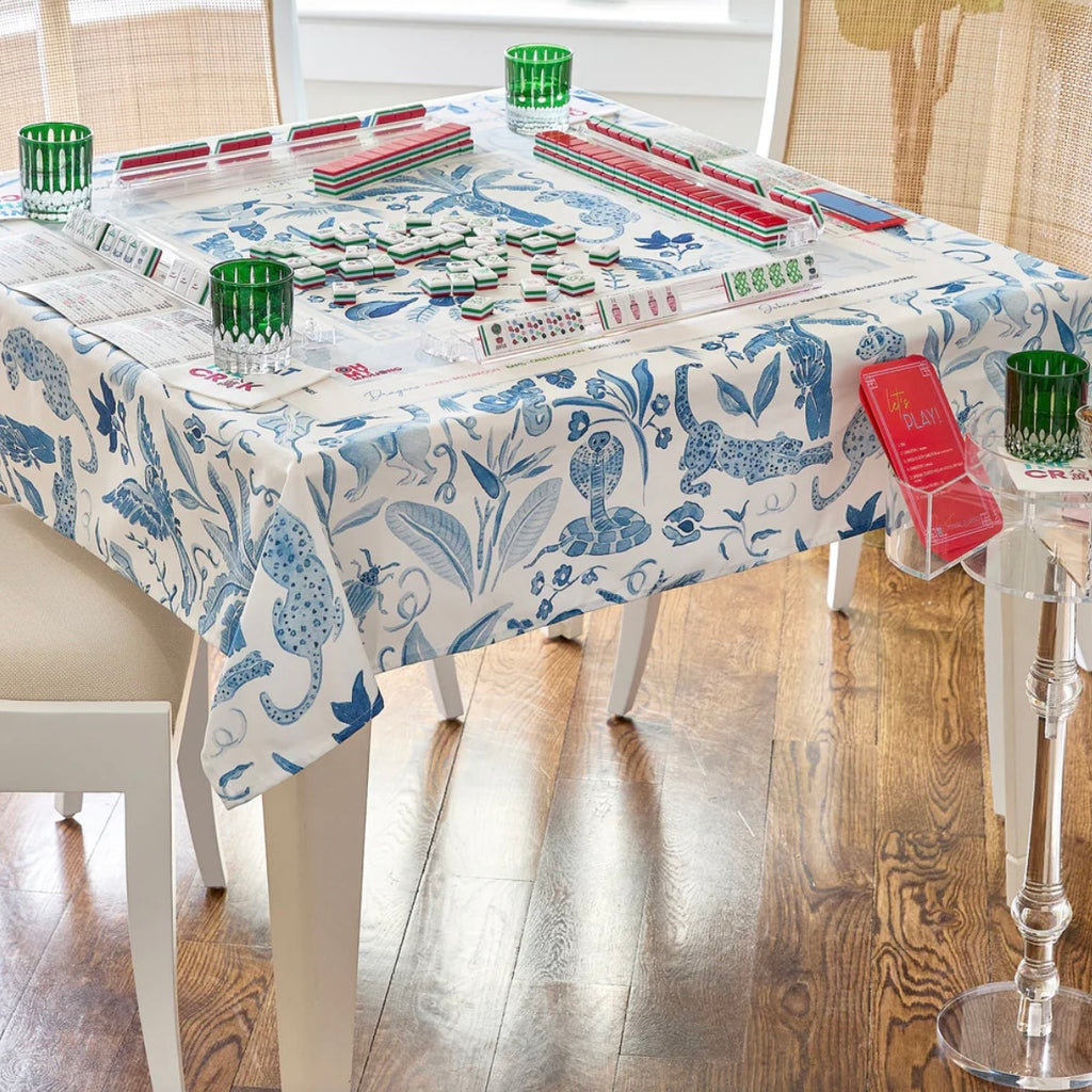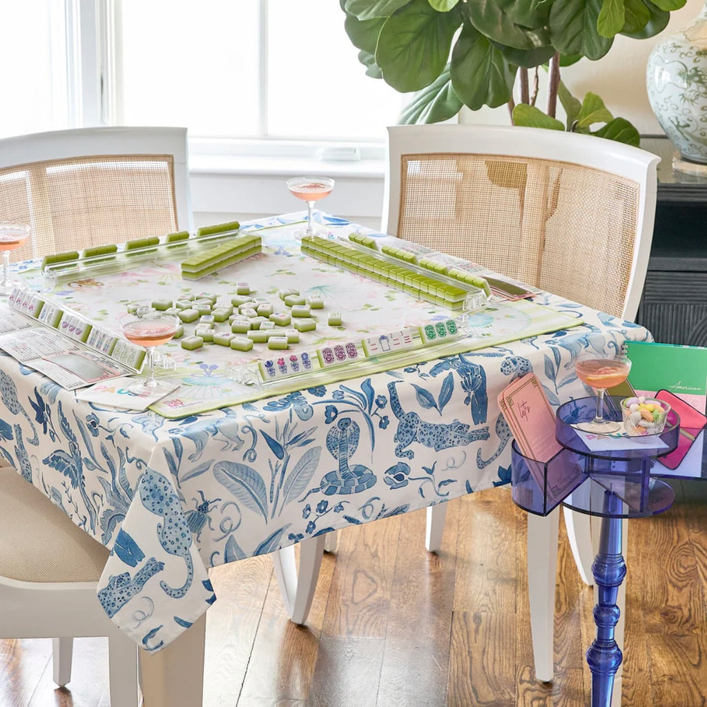 Get ready to level up your Mahjong game with our Mahjong Instructional Playing Tablecloth! This isn't your grandma's dull table cover – we've teamed up with the fabulous Catherine Cartie to bring you a burst of fun and color in the form of her Blue Amazon watercolor print.
