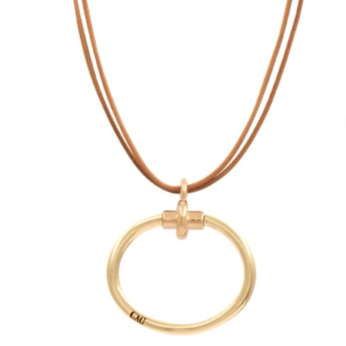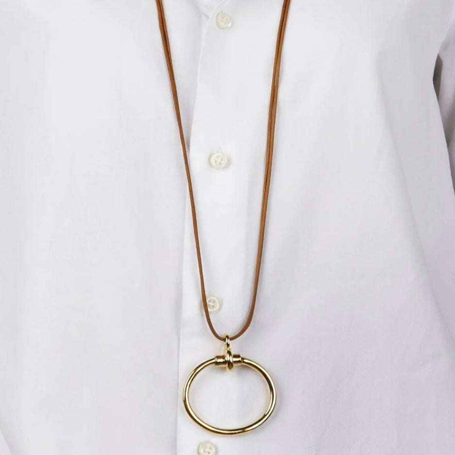 Gold Plated Necklace / Vegetable tanned camel leather