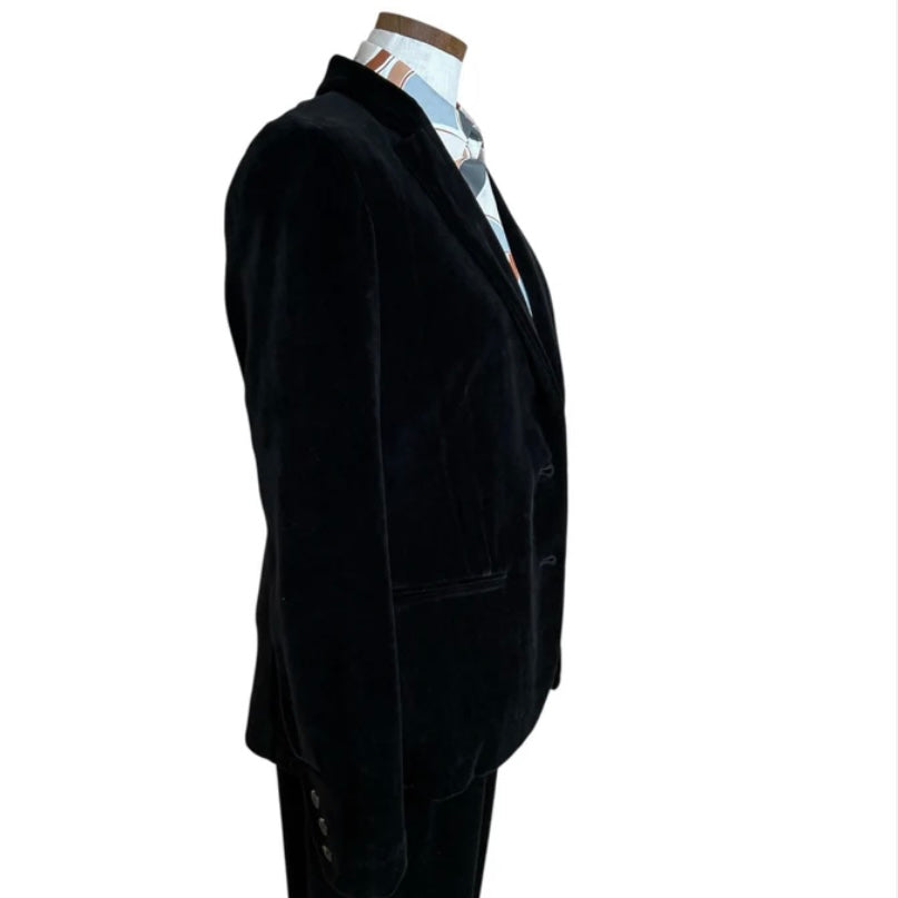 Classic single breast Velvet jacket, fitted cut, two buttons closure and two front pockets.